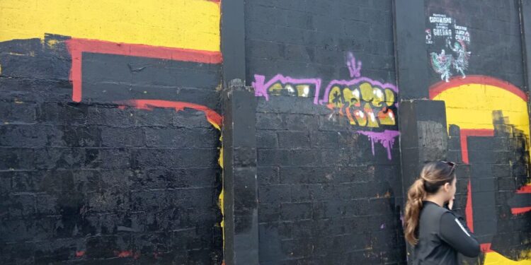 El mural con la frase ‘Las cuchas tienen razón’, un homenaje a las madres de víctimas del conflicto armado que…