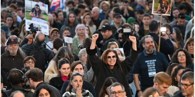 Centenares de israelíes han seguido entre aplausos y lágrimas, desde la ya bautizada como plaza de los rehenes en Tel…